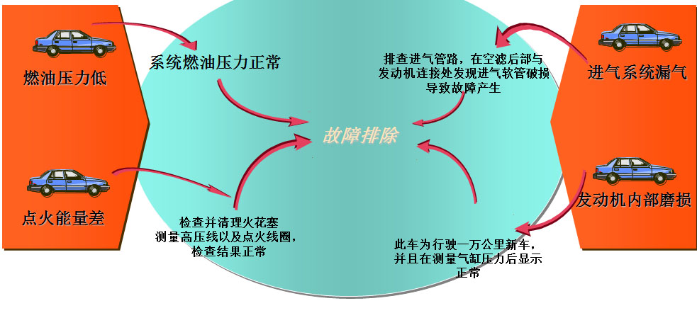 故障修复:读取故障码为燃油修正过稀,导致行车加速无力,按诊断思路对车辆故障进行初步判断。对车辆进行尾气值测量,发现其中氧含量过高,证明车辆混合气稀,并非偶发性故障。