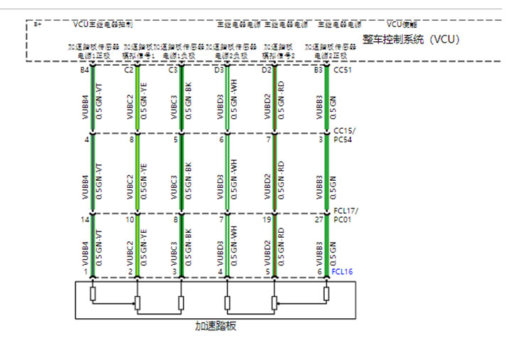 案例总结:故障车辆在踩下踏板时候加速踏板信号1电压基本没有变化,且最大开度仅有4.5%,正常情况VCU数据流中加速踏板信号1电压值约为加速踏板信号2电压值的二倍。