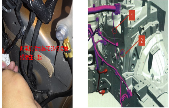 ECU接地点有电磁干扰(来源于电机),导致发动机误报故障灯;