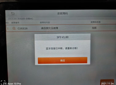 1.首先用诊断仪读取相关故障码,在暖风开启的状态下吗,AC模块报出高压侧欠压故障,可以大致判断可能是PTC相关的高压插头松动或退针;