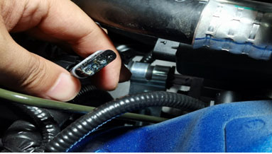 6.检查发现EXV阀线束接插件进水并有腐蚀现象,下图3,测量电源电压13.9V,LIN线电压8.9V,接地正常;