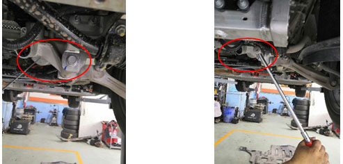 5.发现左下摆臂连接处声音大,拧紧螺栓后声音消除