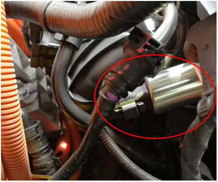 故障现象:车辆增程器运行一段时间后停放,启动车辆上高压仪表显示发动机故障灯亮