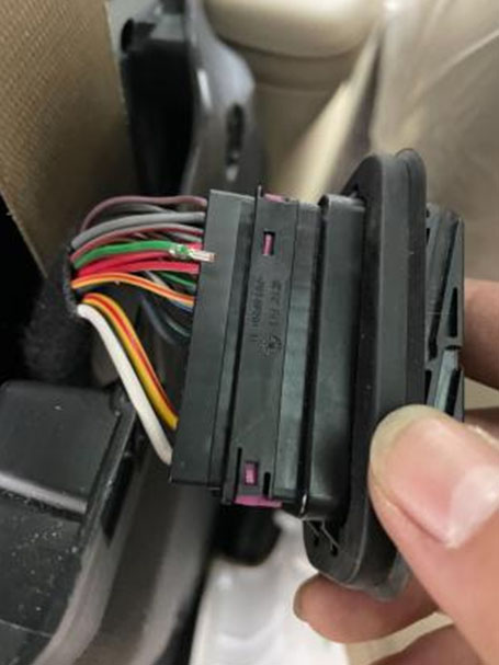 BCM一端不导通。仔细检查时发现B柱插头的2#针脚晃动,拽一下此线束,结果如下图。