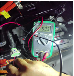 检测充电座上的火线插座触点,没有发现发热烧蚀的痕迹,初步判断应该是火线LI温度传感器测量值偏差导致,于是查找电路图,从OBC车载充电机的低压插接器处测量两个温度传感器的电阻值,测得温度传感器1的阻值尾6.5千欧,而温度传感器2的阻值为53.3欧姆。这两个温度传感器都是NTC负温度系数的传感器,电阻越小反应的温度越高,与