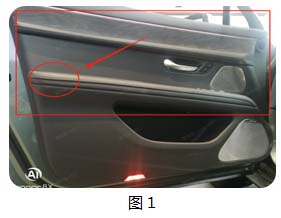 2、经过反复测试辨听,声音源定位在门内衬左中部区域。(如图1)