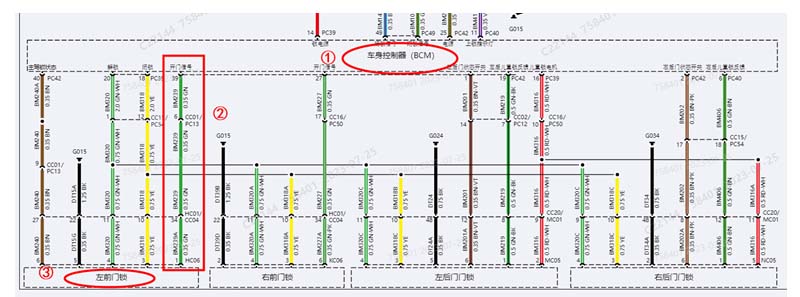 故障现象:解锁打开主驾驶门后仪表与大屏不点亮,坐上主驾驶座椅后发现仪表不显示主驾驶车门状态