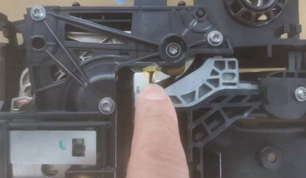 5.在拆除门皮下去操作发现拉手行程有异常,通过垫东西来改变其行程后外拉手可以正常打开门锁