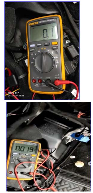 把各插头插好后,等故障复现时,测量PC31的5号针脚,电压值为0.019V,没有电压输出,说明是IVI内部故障,没有电压输出,导致DMS不工作。倒换试驾车的IVI上去试车,5号针脚就有14V电压输出,DMS能正常工作,经过ABA反复测试,最终确定了是IVI内部故障。