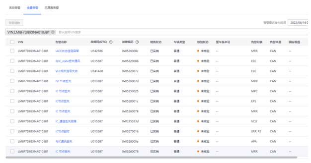 1.到店检查,故障不在线,诊断仪读取故障码,INFO CAN上控制单元IC,IVI,TBOX都存在CAN线信号和通讯丢失的历史故障码;