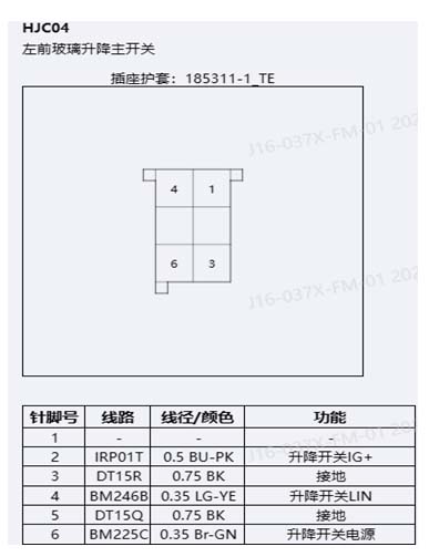 3.查找技术资料主开关插头为HJC04,针脚定义如下图所示: