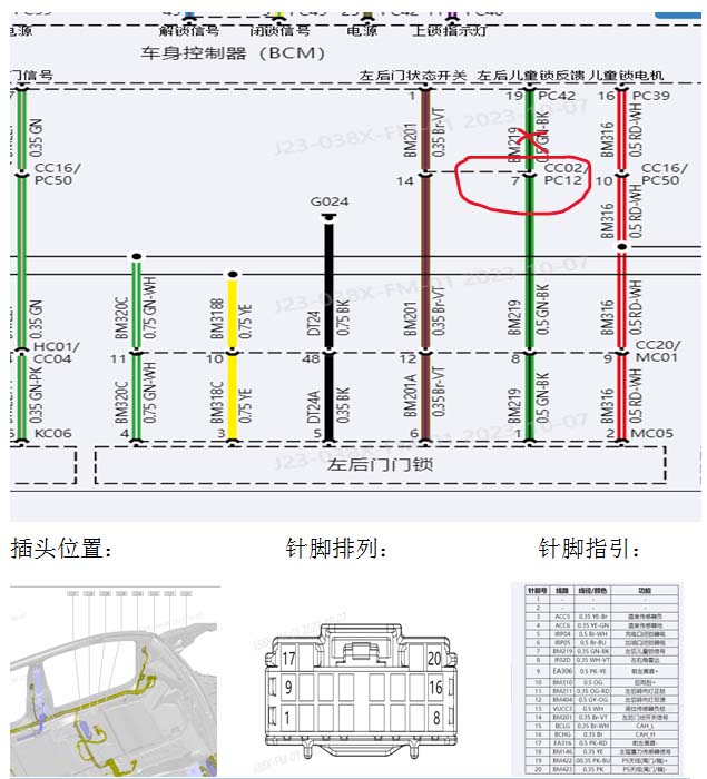 解决方案:维修左后门儿童锁反馈线