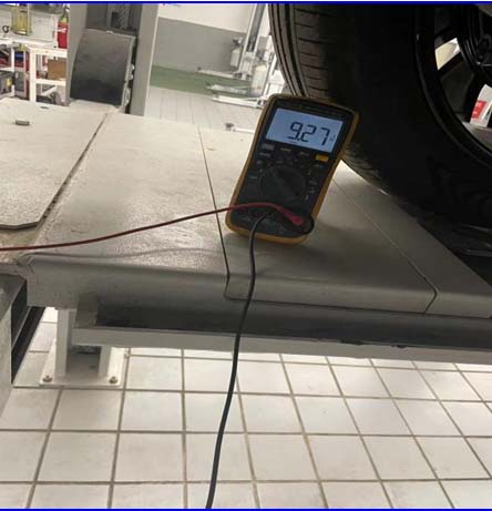 3、测量CHCAN通讯线正常后,根据电路图测量模块的供电和搭铁,发现RBC18和RBC19的8号电源线,电压值只有9.27V,正常应该是14V左右的电压,供电电压偏低,电源线路存在问题,导致模块无法通讯,接着往前排查电源线。