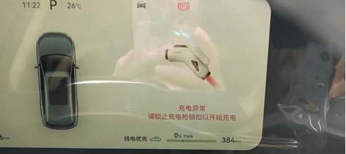 故障现象:用户车辆未进行充电,但是刚上电准备开车时,却发现车辆无法挂挡,仪表提示【充电异常,请锁止充电枪锁扣以开始充电】