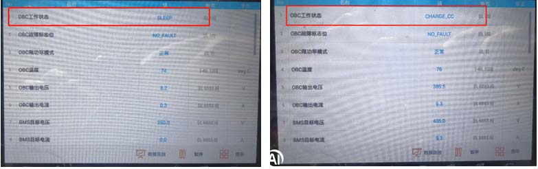 故障现象:车辆无法充电(慢充)、仪表显示充电指示灯,无充电交互信息,诊断仪读取车辆系统无故障,检查充电枪CC电阻正常、CP电压12V/PE接地正常(220V插座接地正常,电压正常) ;