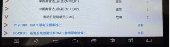 1.诊断仪读取EMS故障码信息为“P128100 DMTL泵电流频率过小”“P043F00蒸发系统泄漏诊断DMTL参考泵电流偏小”。