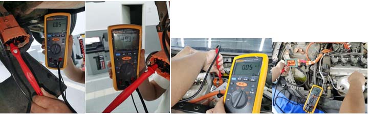 电池包前端正/负级对地绝缘电阻值约 0.05 兆欧姆(异常),分段测量前舱端高压部件绝缘阻值如下:,电动压缩机绝缘阻值13.1 兆欧,断开GCU端连接PDU母线插件、连接PDU端电动压缩机插件、电池包前端高压插件等,分别在GCU端连接PDU母线插件和电池包前端高压插件测量对地绝缘阻值10.33兆欧姆,可判断前驱动电机、空调PTC、电池包PTC及高压线绝缘正常,测量GCU本体绝缘阻值 0.05 兆欧姆,GCU本体不绝缘