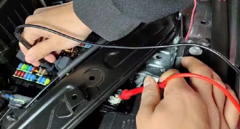 3. 检查小电瓶正极线上的UEC保险(发动机舱保险盒保险),发现该保险和前舱保险盒并不导通,但是该保险丝并未熔断,可以锁定问题应该在前舱保险盒内;