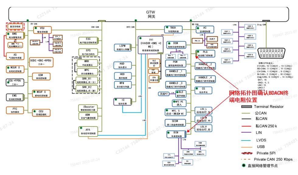 4、进行网络拓扑图分析BDCAN终端电阻为