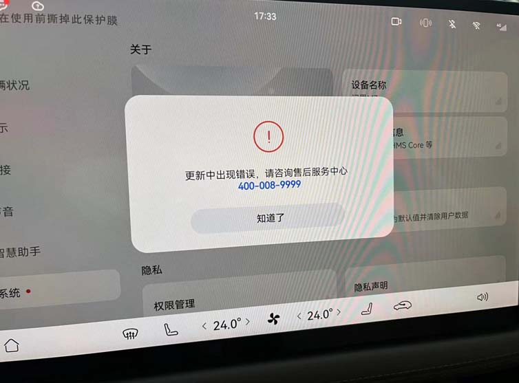 检查过程该车辆中控屏系统更新界面有个升级失败提升,将车辆副驾驶座椅模块的版本号与最新升级系统的版本号对比,该车需要升级该模块,将该模块用最新系统重新升级后故障排除。