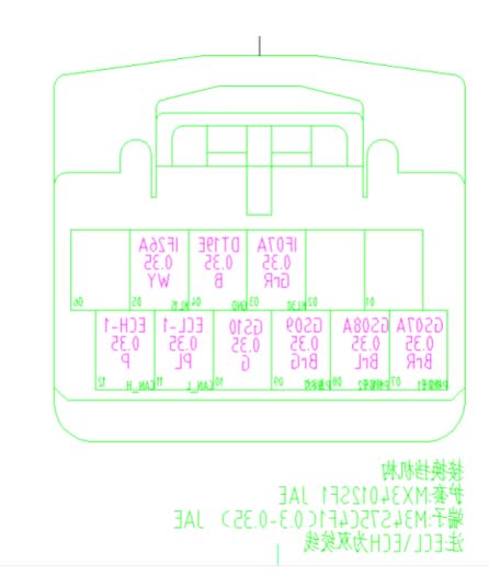 6.通过换挡杆插头针脚示意图测量(图二),得出数据:,5号针脚与3号针脚,各对地都有14.11V的电压(证明到GSM的供电正常),4号针脚对地电阻小于0.5Ω(接地也正常),11针脚与12针脚各对地分别为,2.21V与2.81V(CAN线也正常)随后拔出插头,检查公母插头的针脚与端子,均无异常。重新插回去,故障依旧(排除插头针脚接触不良问题)(此时基本可判定为换挡杆故障,但为了排查的严谨性,需要在进行换挡杆的ABA对调测试来证明猜想。)