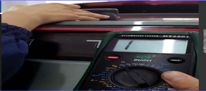 6.断开TC13插头,按压尾门微动开关检查微动开关的电阻值。电阻值一直显示为无穷大,按压开关无变化,判断微动开关内部故障,需更换