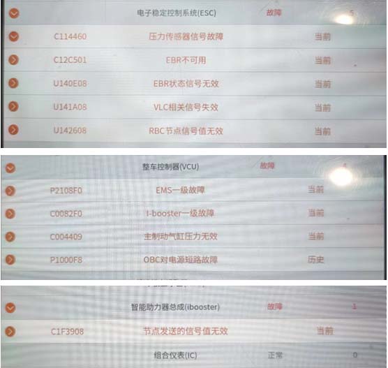 ESC报(压力传感器信号故障/EBR状态信号无效,等 )