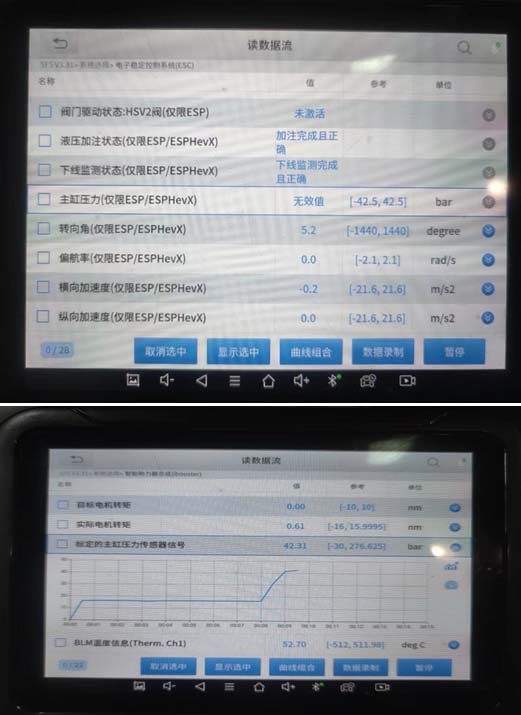 ①ESC主缸压力为 无效值(踩刹车也无变化)。