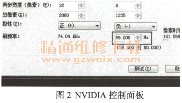一台新装的双核电脑,安装Windows 7系统后,玩游戏时开启“垂直同步”失效,游戏画面在移动中会出现波纹等失真现象。查看显示属性,发现刷新率只有59Hz,选择60Hz以后进入游戏,问题依旧(如图1所示)。
