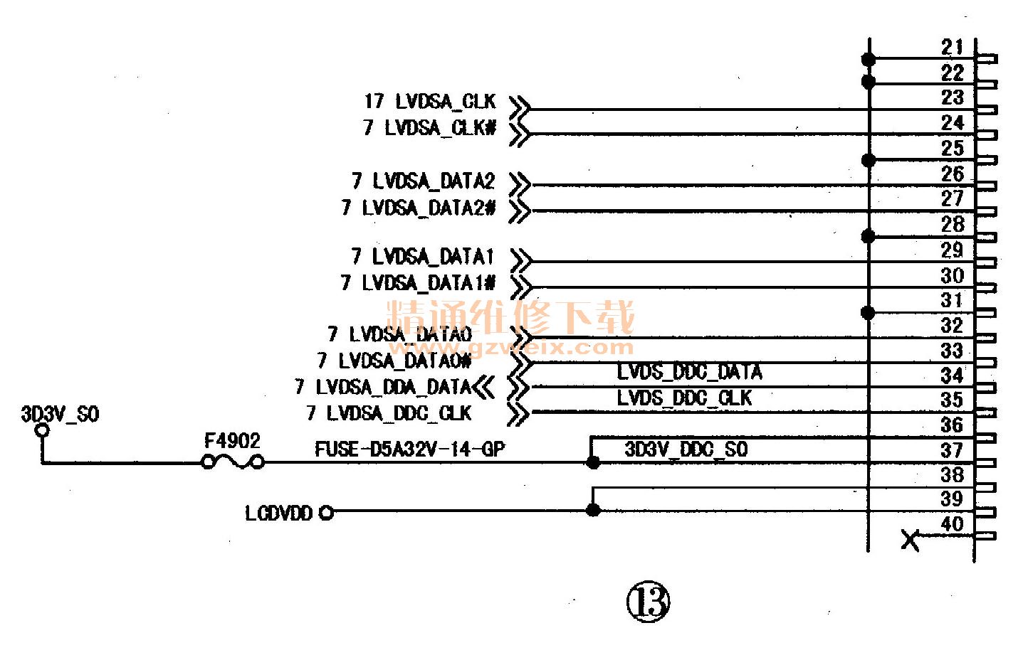 根据该机的开机时序:要产生CPU供电,供电芯片则需要有开启信号和SVID信号,经用示波器检测没有SVID信号,桥的APWROK与PWROK信号是连接在一起的,流到EC芯片的EC脚上电压经测量为3.3V正常,桥发出给CPU的DRAMPWROK信号流向一个门电路的①脚,经测量输出电压为3.3V正常,如图9所示。接下来是桥得到APWROK信号后会去读取BIOS开启时钟,再发出PROCPWRGD信号给CPU,PROCPWRGD信号从桥出来后“改名”为Hse CPUPWRGD信号,如图10所示,在CPU插座旁边有一只R503的电阻,经测量R503与CPU插座相连接的一端无电压,测量此电阻发现其阻值为0Ω,已损坏,找一只10kΩ电阻换上后电压恢复正常,待机电流也上升正常,再检测SVID波形如图11所示、内存SM总线波形如图12所示、EDID信号波形如图13所示,都正常,至此故障排除。