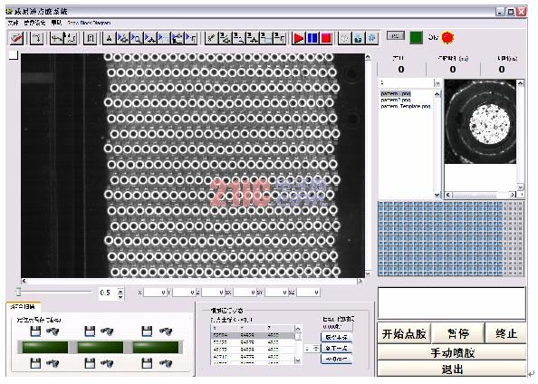 本系统主要完成LED支架的自动上料,自动识别LED杯子精确XY位置,自动控制点胶胶量等功能。