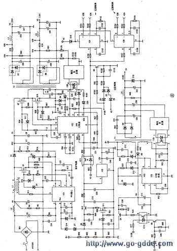 该电源开机时能输出V1SB(5V)、V2(12V)和V3(24V),待机时仅有V1SB输出,以维持主机CPU工作。开/待机控制由CPU输出指令进行控制。电路原理图见图8,其中IC1、IC2所用芯片与“泰达”的ICl和IC3相同。工作原理也大致相同。但“力信”的线路简明。未设置防过渡历程误动作的保护电路。