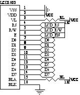 VL:LCD对比度调节端,电压调节范围为0-5V。接正电源时对比度最弱,接地电源时对比度最高,可以用一个5K的电位器来调整对比度;
