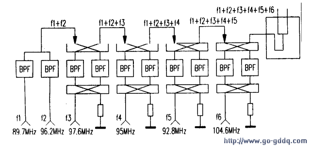 多工器有双工器、三功器、四功器等。但这都是在双工器的基础上发展起来的,笔者所在台用于转播省电台六套节目使用多工器,它由星点式滤波器与桥式滤波器级联组成。下图为其基本结构组成框图。