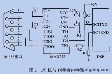 PC机与DSP串行通信的实现包括三个部分,即硬件设计、上位机程序设计、下位机程序设计。