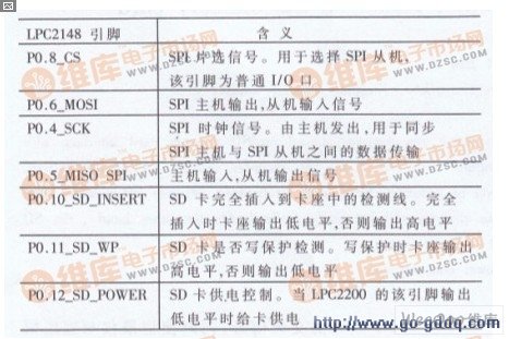 表1 LPC2148与SD卡 卡座 的连接引脚