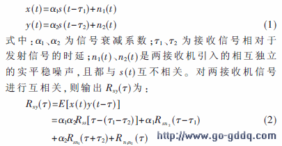 假设辐射源辐射的信号为实信号s(t),被两个接收机接收的信号分别为x(t)和y(t),具有不同的噪声和时间延迟,两信号可表示为: