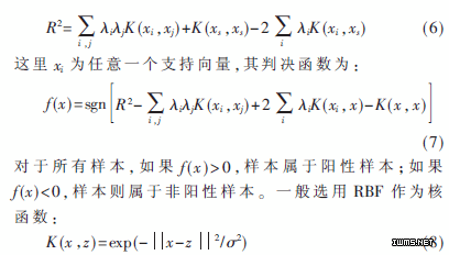 通过训练后可以获得一组支持向量,然后通过式(6)计算出半径R: