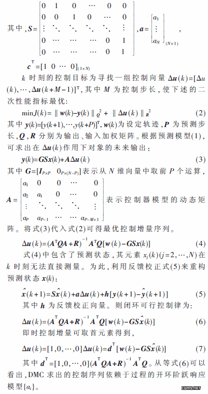 预测控制与多模型的结合是一个很自然的想法,能够很好地解决如中和反应过程的pH值控制等类似的问题[6,7],而在吸热和放热两个阶段呈现截然不同特性的聚合反应过程同样可以采用该思路[8,9]。本文将预测控制方法与多模型思路结合起来,提出了基于性能指标切换的非线性动态矩阵预测控制算法,并针对苯乙烯聚合反应过程的温度控制进行了仿真研究,结果表明这种方法具有良好的适用性,性能上的提升也很明显。