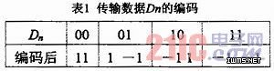 例如,当传输的数据信息Dn取2bits时,对Dn编码见表1。