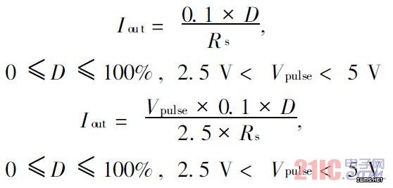 图4为在PWM调光模式下外加PWM脉冲驱动信号和输出驱动电流的测量结果。PWM占空比从0~100%。从图中可以清楚的看到,通过改变不同的PWM占空比可以调节额定电流,PT4115最大能够输出1.2 A的电流。