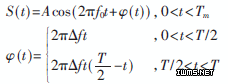 其中,f0为FSK信号的中心频率,?驻f为信号频偏,T=1/fm为低频调制信号周期。FSK信号如图1所示,其中虚线为低频调制信号,实线为载频信号段,中部为上边频段,两端为下边频段。
