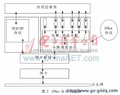 DNet协议在系统中的位置与TCP/IP协议平行。DNet协议在系统中的位置如图2所示。