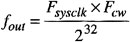 AD9851是一款数字频率合成芯片,其最高工作频率为180MHz,AD9851的最大输出频率为系统时钟的40%时杂散频率小,它有40位控制字,其中5位为相位控制,1位为6倍参考时钟倍乘器开关控制,32位为频率控制。当外接20MHz时钟源,6倍频开启后系统时钟Fsysclk=120MHz, 设频率控制字为Fcw,则输出频率由式
