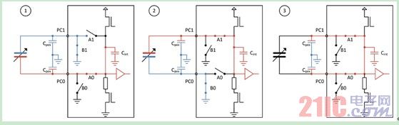 对于电容传感器的测量,芯片提供了非常灵活的连接方式,对比典型的连接方式如下所示: