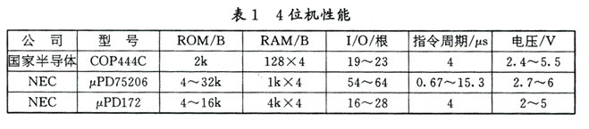 但即使如此,4位机的市场占有率仍然较小。性能如表1(篇幅所限,仅举数种说明)所列。