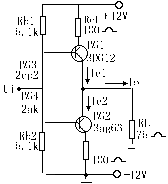 图3是串接式的跟随器,其特点是:(1)类似图2一样,R4两端交流电压具有自举作用;(2)BG2采用共基接法,使IC2具有恒流作用,A、B两点交流阻抗RAB大大也提高,从而提高了跟随器的输入阻抗。