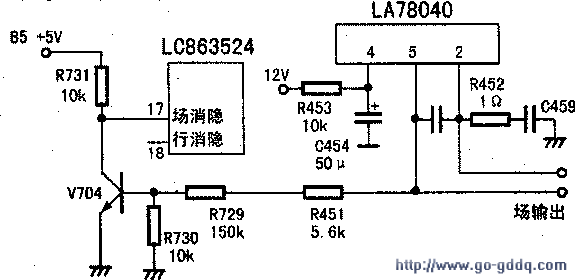 我告诉他们先测场块⑤脚电压,如果是11V左右,换掉场块即可。后来证实说是场块坏。AN5522承受的电流没有LA78040大,它内部易软击穿。同行们在以后碰到SKD套件板类似的故障,可按此法检修,以免走弯路。
