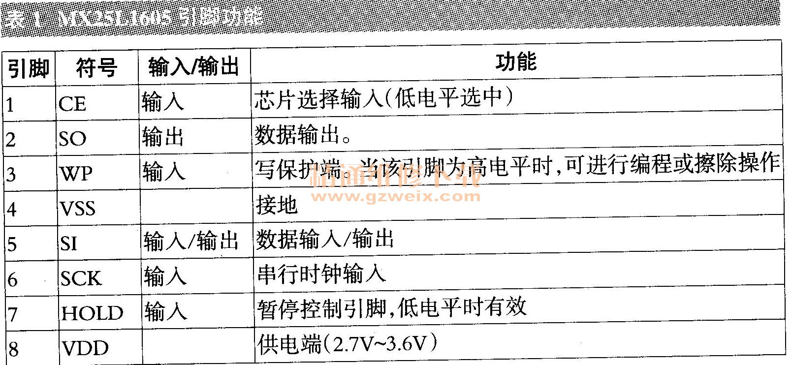 U5为32Mbit的串行Flash,其引脚功能见表1,外围电路如图6所示。