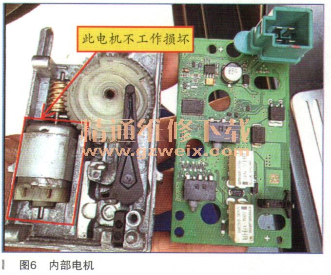故障排除:更换电动转向锁内部电机,重新装配好后,开钥匙开关时转向锁可以正常工作了,可以听到转向柱下部有解锁的声音。接着也可以正常启动发动机了,至此故障排除。